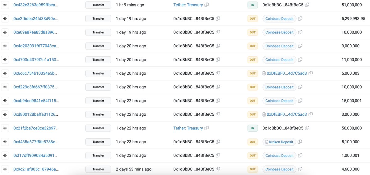 在#Ethereum上,巨鲸「0x1dBb」从#TetherTreasury收到~1.5B $USDT并将其转移到交易所。