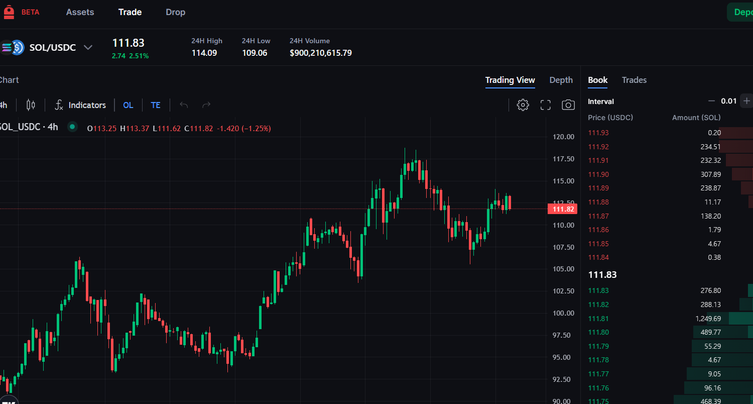 4、KYC之后,往背包交易所里转资金,我自己是转的SOL,目前试水,大概转了200u,然后刷SOL/USDC交易对。可以根据自己的情况,刷交易量和交易对,即交易总额和数据的多样性,不要只刷一个交易对。我的计划是刷100w u左右的交易额,然后刷10个交易对,主要集中在SOL/USDC交易对。然后记得留一定的余额,不要全部刷完了,Stark的经验教训,建议留0.5 SOL以上。