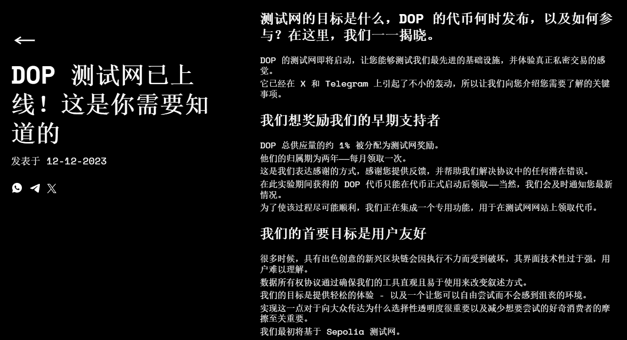 空投说明:DOP的官网明确表明,他们会奖励早期支持者,会将DOP总量的1%分配给测试网奖励。