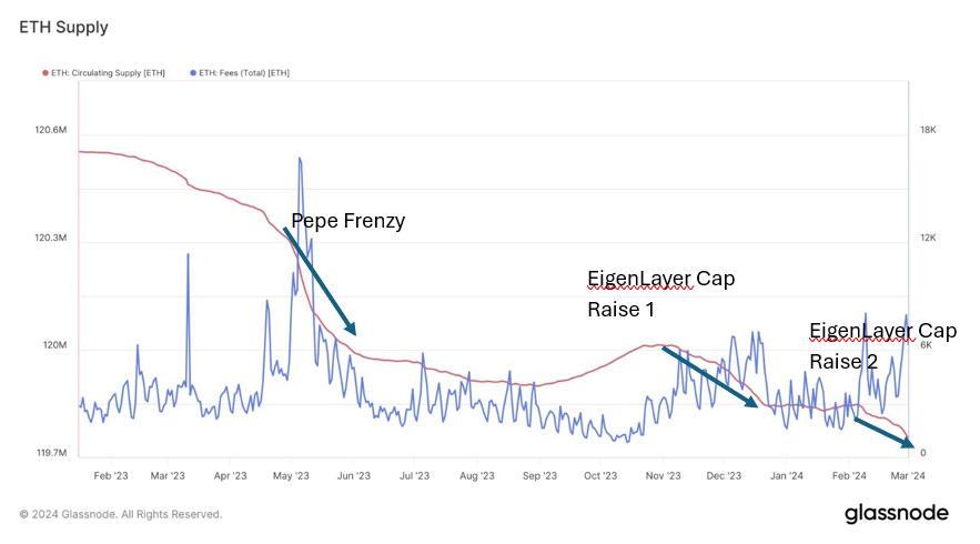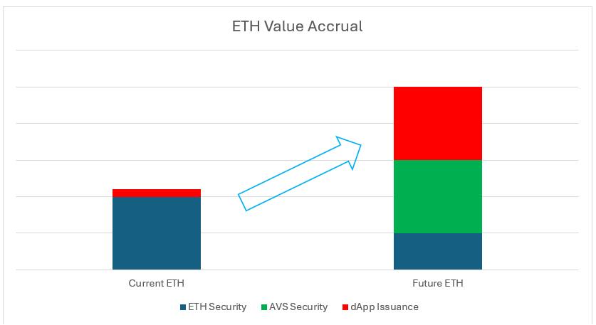 我们相信这些创新扩大了ETH的 TAM。它不再仅仅保护以太坊网络,还通过 EigenLayer 为许多其他 AVS 提供安全性。此外,它还充当其他 dApp 的启动板;锁定ETH使持有者有权获得空投。最后一个用例可以被视为构建在以太坊生态系统上的 dApp 的“首次发行”成本,以引导资本和用户群。我们之前担心ETH 对其收入倍数的估值,因为网络变得更便宜,而且交易量可能不会很快赶上。随着 ETH 潜在 TAM 的扩大, ETH持有者有更多的场所可以通过收取保护其他网络的安全费或在其他 dApp 的首发中分红来获得回报。