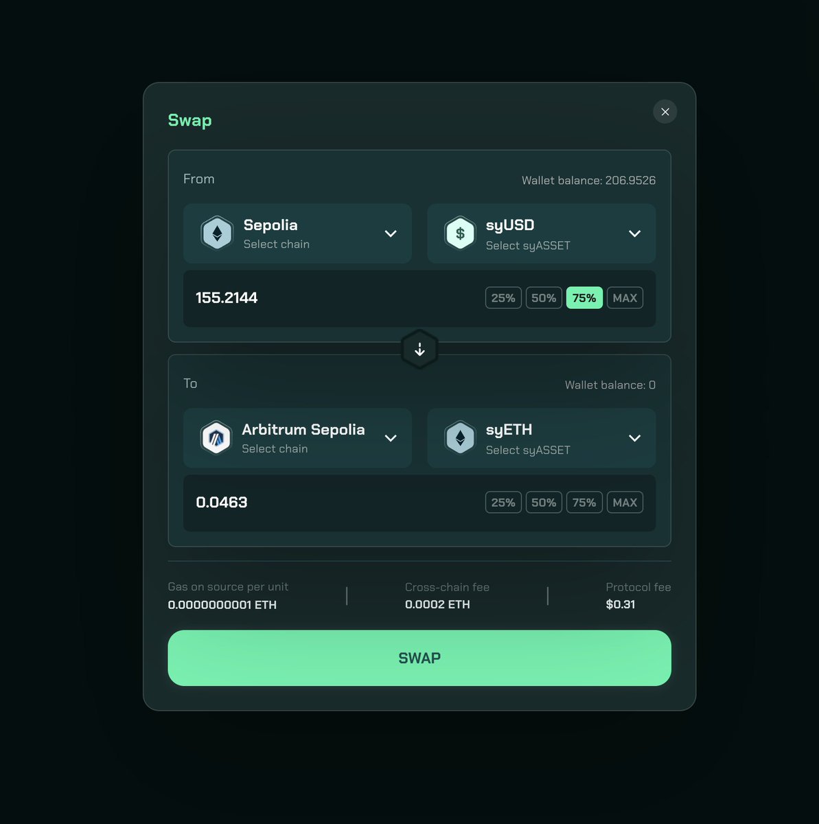 ▪️将Sepolia的syUSD换成Arbitrum上的syETH。