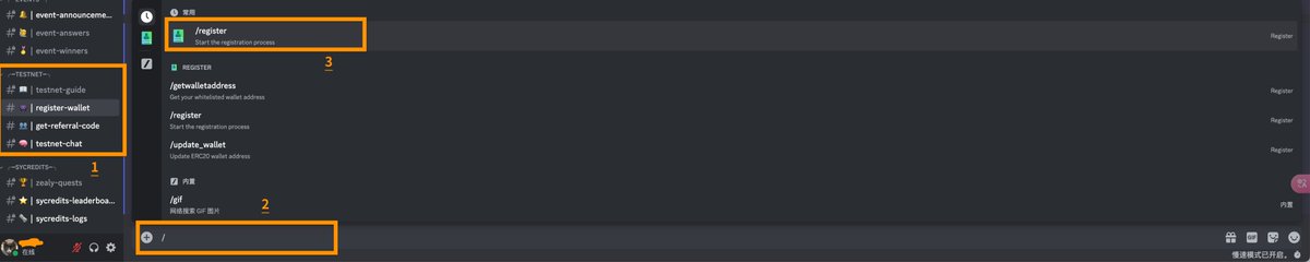 ▪️定位至#Register-Wallet,在文本框中输入/register命令