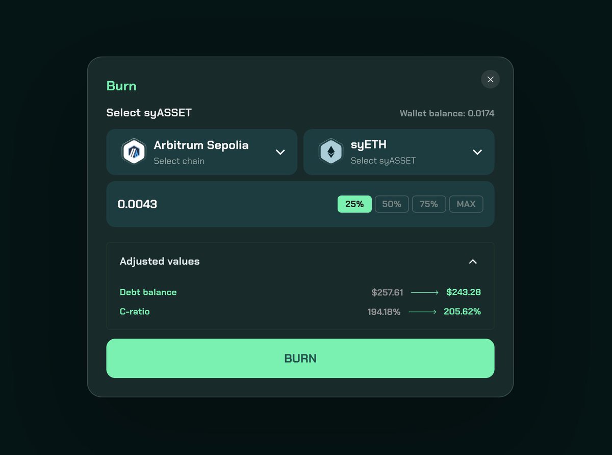 ▪️选择「Burn」,烧毁Arbitrum中的syETH。