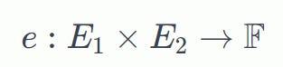 这里e是配对, E 1 和E 2 是椭圆曲线,𝐹 是有限域。