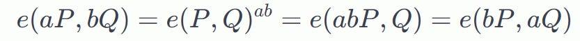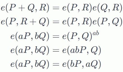 椭圆曲线配对具有称为双线性映射的某些属性: