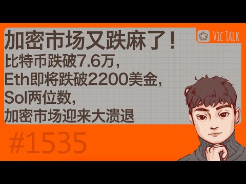 加密市场又跌麻了!比特币跌破7.6万,Eth即将跌破2200美金,Sol两位数,加密市场迎来大溃退【Vic TALK 第1535期】