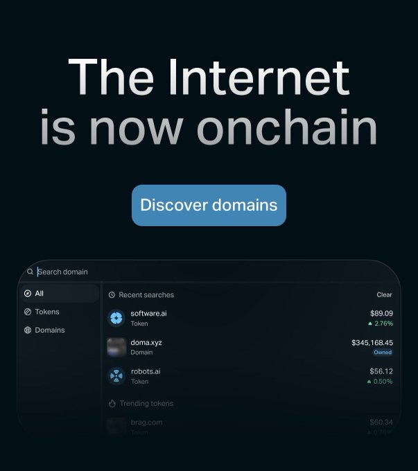 一个容易被忽视的 RWA 新方向:不是房产、不是债券,而是互联网域名本身。项目叫是Doma Protocol。一开始我以为它只是 ENS 那一挂的“链上名字”,但认真看完之后发现完全不是一条赛道。ENS 解决的是 Web3 身份,而 Doma 解决的是一个更底层的问题:如何把真实互联网资产变成链上可交易、可生息的金融资产。