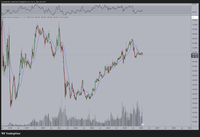 从技术角度来看,自近期主导地位指数(Dominance)高点以来,它一直处于下降趋势。 这与2020年比特币价格上涨的情况类似,当时我们实际上已经处于牛市之中。 这次的情况也一样。自2025年4月的低点以来,我们已经进入了牛市,而不是牛市。
