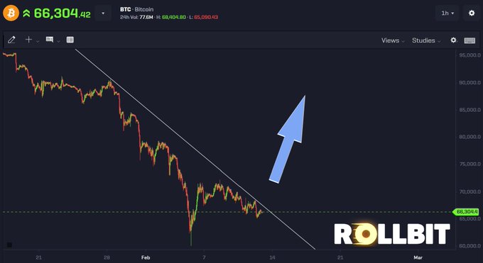 任何在CT论坛上稍懂一点技术分析的人都知道,一旦这条对角线压制线结束,价格就会直接回到9万到10万美元。 现在市场上的恐慌性抛售者真的在以6.6万美元的价格出售价值9万美元的股票。