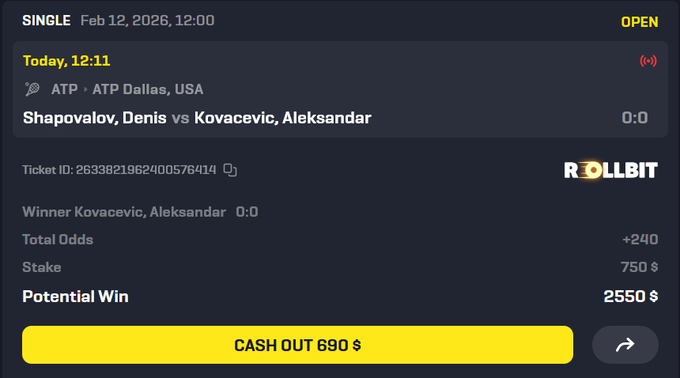 沙波已经彻底过气了,简直没法看。 与此同时,科瓦切维奇正在崛起。 +240 的赔率,稳赢下这场比赛。