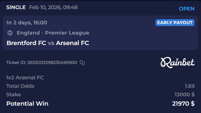 冠军已定。阿森纳将轻松击败布伦特福德。 猜中最终比分者将获得 100 美元奖金。(请开启私信,以便我支付奖金)