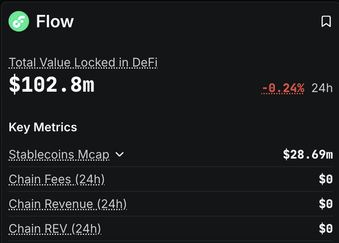 Flow 融资 7.46 亿美元 “为 NFT 而建”,却错过了整个 NFT 周期 生态系统从未超越 NBA Top Shot 之类的收藏品和一些垃圾游戏 封闭的、需要许可的验证者集,假装去中心化 到处都是 0 美元 因为就像过去一样,今天仍然没有理由使用它 尽管如此,FDV 仍然高达 3 亿美元 零 twitter.com/hantengri/status/2...