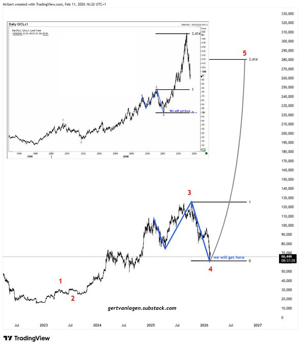 12.6万美元是周期中期的顶部,回落到6万美元是周期中期的底部。抛物线式反转正在进行中,美元指数暴跌,风险偏好股飙升,标普500指数和金属价格横盘整理。然后经济衰退。 来反驳我吧👇