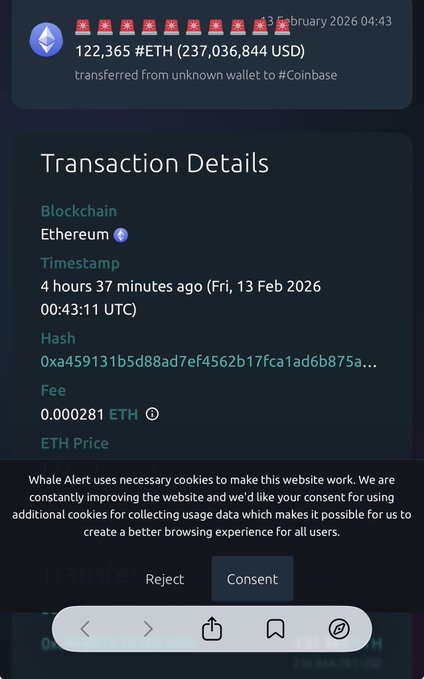 🚨🚨🚨🚨🚨🚨🚨🚨🚨🚨 122,365 个ETH (价值 237,036,844 美元)已从未知钱包转入 Coinbase。 细节