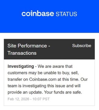 最新消息:Coinbase 表示,用户目前无法购买、出售或转帐加密货币。