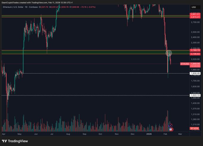 以太坊在2100美元遭遇拒绝,估计会在1800-2100美元区间震荡。如果让我猜的话,大概率会形成一个区间盘整。这个行情太乱了,暂时不考虑参与,除非短周期结构有明显反转或者重新突破2100美元上方。
