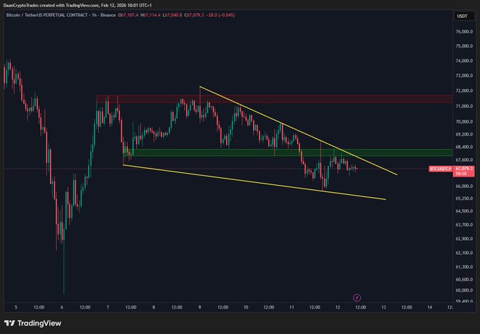 $BTC正在68K美元附近震荡,过去几天的斜向压力线依旧压制着行情。只有突破上方阻力,才有机会再次冲击72K美元区域。相比上周末的大幅波动,现在市场波动性已经明显减弱。