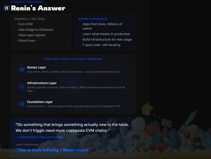 Vitalik 指责 L2 成员只会抄袭,懒惰成性。 Ronin 已经按照他的要求做了七年了。 2026 年将会很有意思。