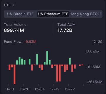 今日比特币和以太坊现货ETF资金流动情况: BTCETF:净亏损1930万美元 ETHETF:净亏损 960 万美元 虽然没有出现极端情况,但双方资金仍然净流出。这是机构降低风险的表现。 下方图表👇
