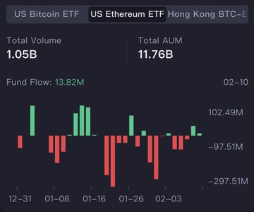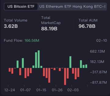 比特币ETF资金流动连续3天转为增长。 2月10日: • BTC ETF:+1.6656亿美元(1月中旬以来最大流入量) •ETHETF:+1382 万美元(相对涨幅较弱) • 资产管理规模:BTC967.8 亿美元 |ETH117.6 亿美元 $BTC 试图蘸酱。 $ETH 仍然不受喜爱。 这只是早期企稳阶段,并非反转。我需要看到持续的资金流入才会宣布趋势转变。 关注@IT_Tech_PL,获取每日ETF资金流动更新。