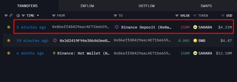 某巨鲸休眠 6 个月后向币安存入价值 420 万美元的 SAHARA,亏损近 800 万美元