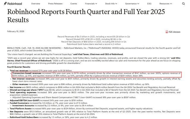 传统巨头的“业绩阵痛”:Coinbase与Robinhood Q4财报的警示