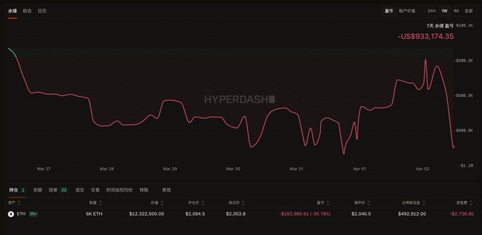 无人在意的角落,麻吉又快要爆仓了🥹 剩余 6000 枚 $ETH 25x 多单,开仓价 $2084.5,清算价 $2040.5,还剩下 13 刀的清算空间;这还是在刚才主动割肉 1700 ETH 亏损 4.8 万美元情况下,不然清算空间挤压到只有 5 刀了… hyperdash.com/view/0x020ca66c3...… twitter.com/ai_9684xtpa/status...
