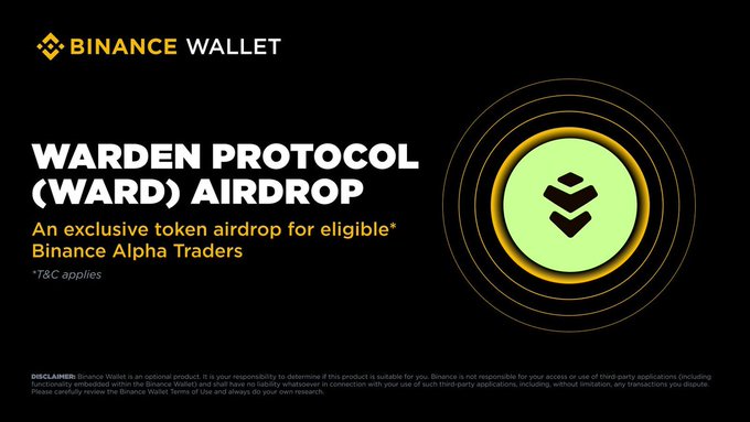 🚨币安Alpha – 即将空投 🎯 名称:$WARD(@wardenprotocol 是一个符合 ERC-8004 标准的基于意图的基础设施,通过求解器驱动的工作流,为 DeFi 和代理驱动的应用程序实现智能账户和自动化跨链执行) 📆 日期:2026年2月4日 符合资格的用户可在交易开放后,前往Alpha Events 页面使用币安Alpha积分领取空投。更多详情即将公布。 twitter.com/bsc_daily/status/2...