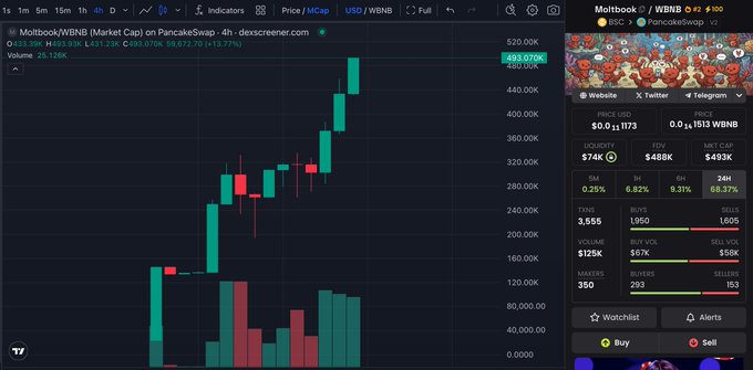 $MOLTBOOK 正在抽水🚀 x2 来自我们的帖子 历史高点创历史新高,约50万美元 twitter.com/bsc_daily/status/2...