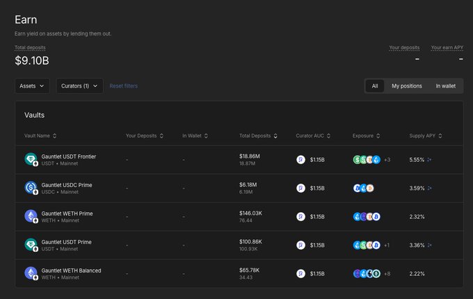 现在,通过 Anchorage 与 Morpho 的集成,机构托管客户的 DeFi 收益已解锁。 Anchorage 用户可以直接通过该平台访问 Gauntlet USDC、 USDT和 WETH 金库。 安全和信任是所有托管关系的核心。如今,这些基石也通过我们的收益策略延伸至去中心化金融(DeFi)领域。 twitter.com/gauntlet_xyz/statu...