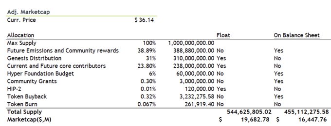 随着 $HYPE 创下新高,提醒你的反对者朋友,“FDV”是最不相关的指标。 市值很重要,它包括未来的预期排放量(由回购抵消),但不包括永远不会真正发行的代币。 考虑到盈利和增长,价格仍然便宜 twitter.com/jdorman81/status/1...