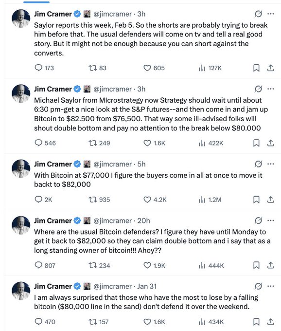 我的阴谋论直觉告诉我,币安发布 SAFU 公告来支撑 $BTC 并不是因为币安自身遇到了麻烦,而是因为他们的朋友和合作伙伴遇到了麻烦,恳求他们采取行动。 这个行业的大部分都是建立在完全未经证实的「BTC是数位黄金」的说法之上的,许多将自己的声誉和财富与这种说法捆绑在一起的大玩家现在都为此感到羞愧。 我认为,既然黄金和白银价格暴跌,幕后操纵者们就会主动发起「转向BTC」的论点。矿工、交易所、场外交易平台、纽约数位投资集团(NYDIG)、贝莱德等等……他们都曾全力投入「数位黄金」的宣传,现在他们需要捍卫这个理念。 我很少做价格预测(当然也不关心比特币的价格,所以不会去预测它的价格)…但如果BTC在本周末/本周没有出现大幅上涨,从而在白银和黄金暴跌之后开启轮动趋势,我会感到非常惊讶。 twitter.com/jdorman81/status/2...