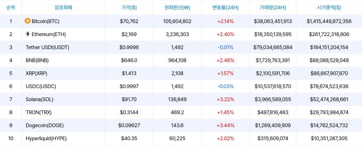 【早间市场简报】加密货币市场涨跌互现……比特币 70,781 美元,以太坊 2,168 美元
