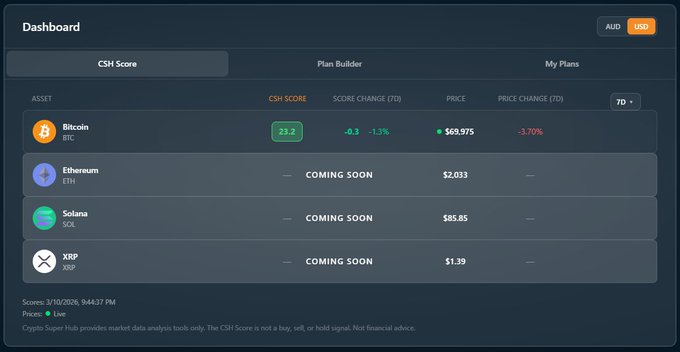 BTC价格:69,958 美元。7 天内下跌 3.55%。