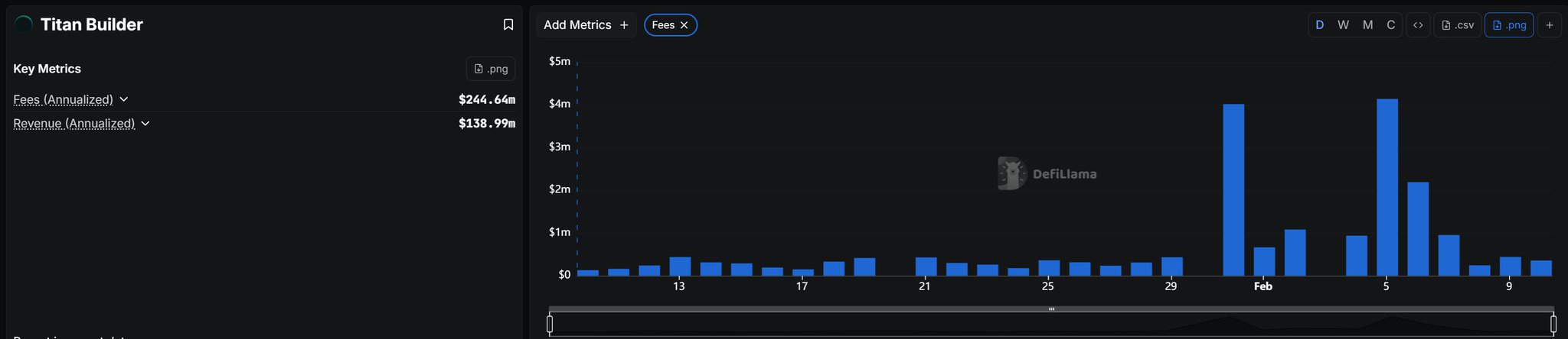 我觉得MEV捕获机制可能有点问题…… 右边是Titan Builders,左边是Flashbots。 尽管市场行情不佳,但过去30天的手续费表现却非常出色。 有人知道内情吗? 最有趣的是,这些产品没有代币,没有庞大的用户群体,也没有所谓的“社区”。 只是优秀的产品带来了丰厚的利润。
