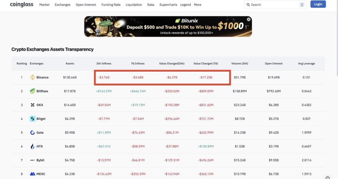 170亿美元7天流出币安 170亿美元?没错! 也许没什么大不了的 也许只是巨鲸轮换仓位 也许人们终于明白“私钥不在手上,币就不是你的”这句话的道理 但即使只有1%的提现被暂停的概率,为什么要冒这个险呢? 我不是来散布恐慌的 我只是想说,每个周期都有人嘲笑自保,直到他们无法登录为止 你可以随意处置这些信息 但别说没人警告过你。