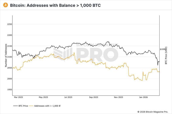 2026年1月和2月至今 新巨鲸积累的比特币数量 相当于2025年的总积累量 他们正在为牛市而非熊市做准备
