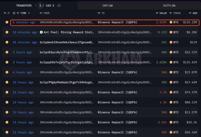 巨鲸3NVeXm 刚刚向 #Binance 充值了 2,035 美元BTC(1.3523 亿美元)。 intel.arkm.com/explorer/addres...… twitter.com/lookonchain/status...