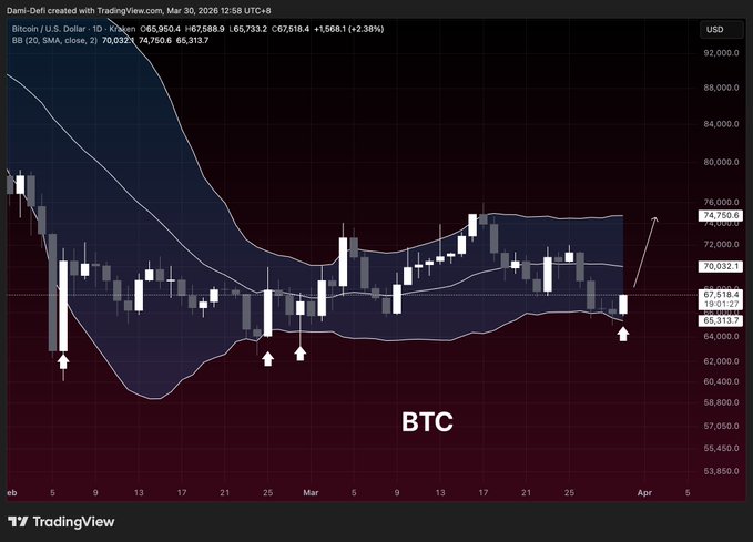 最近每次价格跌破布林带时,通常都会出现剧烈的上涨行情。 你知道这意味着什么吗?