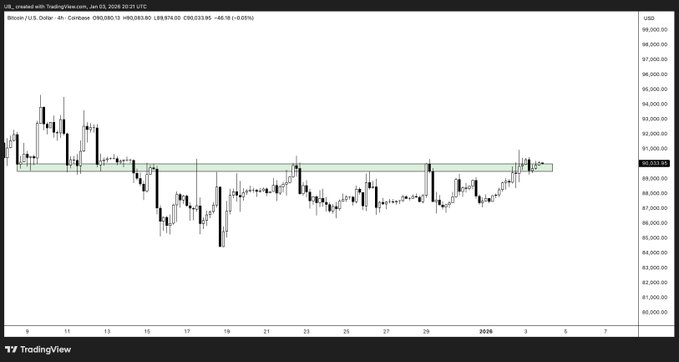 我觉得下周至少会再冲击一次 $95k。 - $90k 最近几周一直是强压力位,但这次没有明显的回撤。 - 最近的抛售也没有持续性。 - 委内瑞拉的新闻也没啥影响。 牛市要发车了。