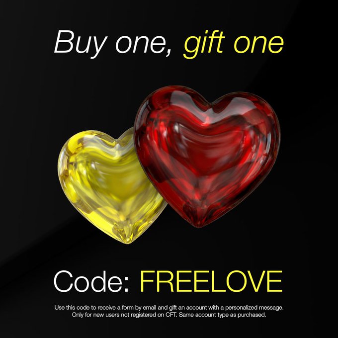 很高兴看到 @CFTradercom 推出情人节送礼活动。 活动详情(2月9日至14日): - 购买一份挑战,即可免费赠送一份相同的挑战 - 结帐时输入情人节优惠码 - 输入收件者资讯和个人化留言 twitter.com/el_crypto_prof/sta...