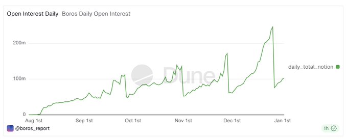 1月份,我们可以预期@pendle_fi的代币经济学将发生非常积极的变化。 但在此之前,让我们先来了解一下 Pencosystem 的最新动态: 1/ @boros_fi 未平仓合约量创下 2.5 亿美元的历史新高 - 2.5亿美元未偿付利息 - 名义交易额达70亿美元 仅仅5个月。 背景信息: Pendle V2