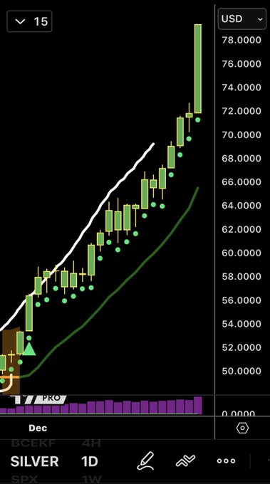 事实就是如此。 只有那些错过了这波行情的人才会看着这张图表说看跌。 提醒他们这一点。 然后告诉他们去马路上玩,或者找点别的爱好。😂 #白银