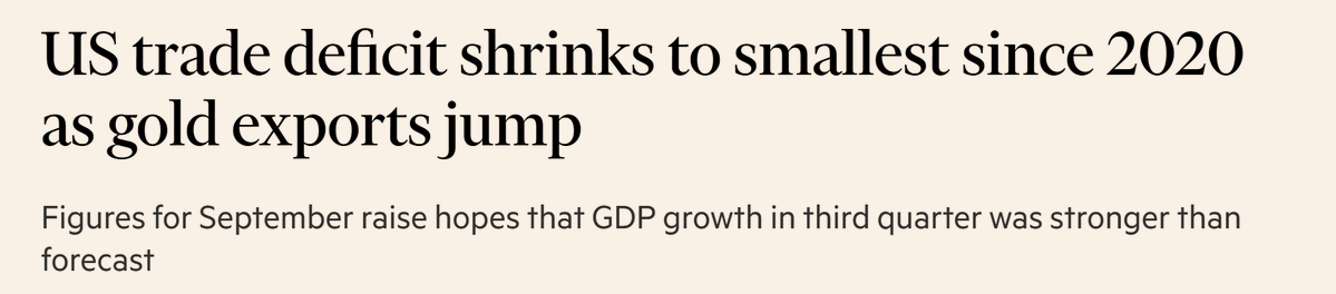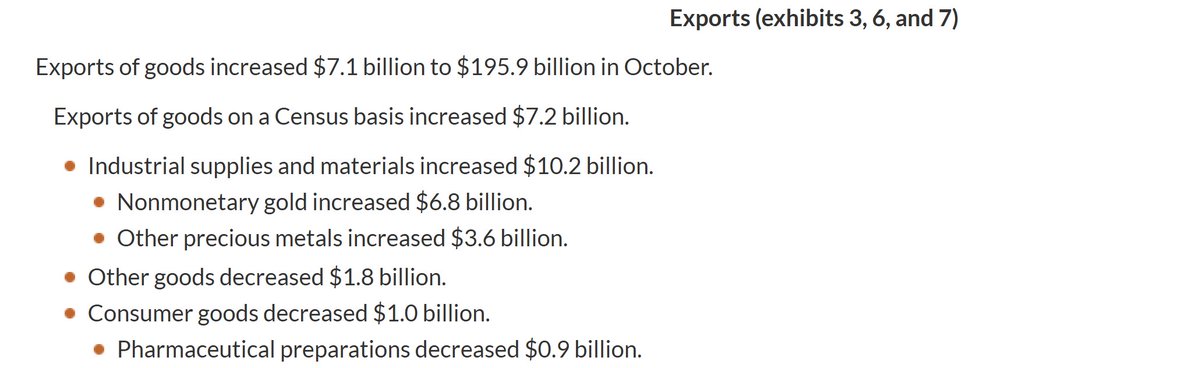 左图:“美国9月贸易逆差收窄至2020年以来最低,黄金出口大幅成长” 右图:根据美国经济分析局(BEA)的数据,美国10月出口年增率似乎主要由黄金和其他贵金属出口推动 美国靠黄金平衡贸易逆差? 🤔🤯 感谢 @Steve_Mosner 提供信息