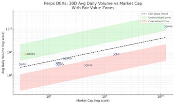 一直在 $ORDER | @OrderlyNetwork 和其他主流 Perps DEX 之间进行对比。 Orderly 目前在 1 天/7 天/30 天交易量中排名第三。 过去一个月,交易量、持仓量 (OI) 和费用增长了 5-10 倍,但估值尚未跟上。市场正在落后。 30 天平均交易量