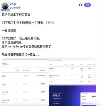 这位朋友在23年花了111.98美金注册了一个后缀为AI的域名