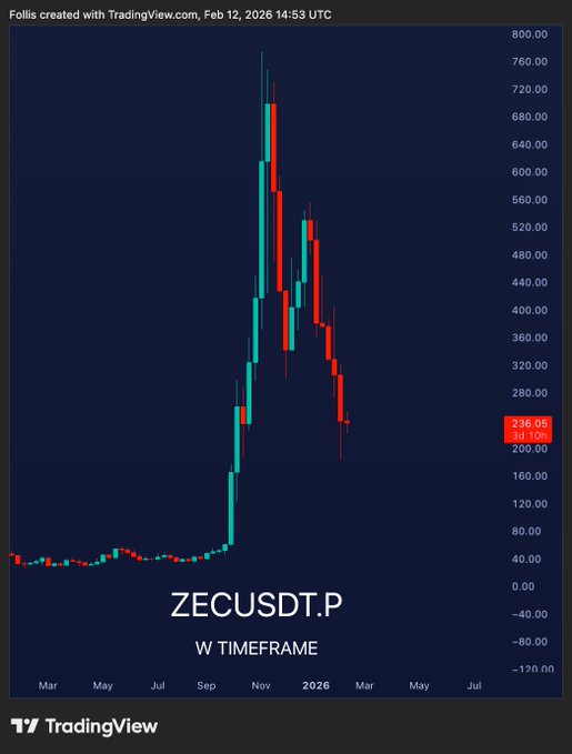 三个月过去了,我们现在的情况是: $ZEC 价格上涨了不少,但几个月内买入价格上涨 20 倍的币种通常不是明智之举。 很有可能价格会再次跌破 100 美元,届时它将成为颇具吸引力的长期买入标的。 如果你想让自己心情愉快,可以看看引用帖子里的回复。 twitter.com/follis_/status/202...