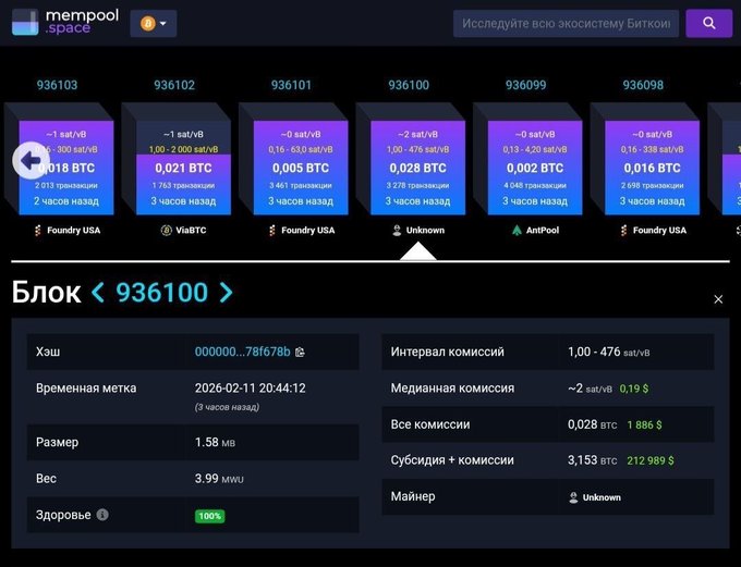 💸 一名单人矿工中了头奖。 @Bitcoin 区块 #936100 由一位未知矿工挖出,获得 3.153 BTC (约 21.3 万美元): • 3.125 BTC区块补贴 • 手续费约为 0.028 BTC 2026年还能单人挖矿吗? 罕见,但并非不可能。
