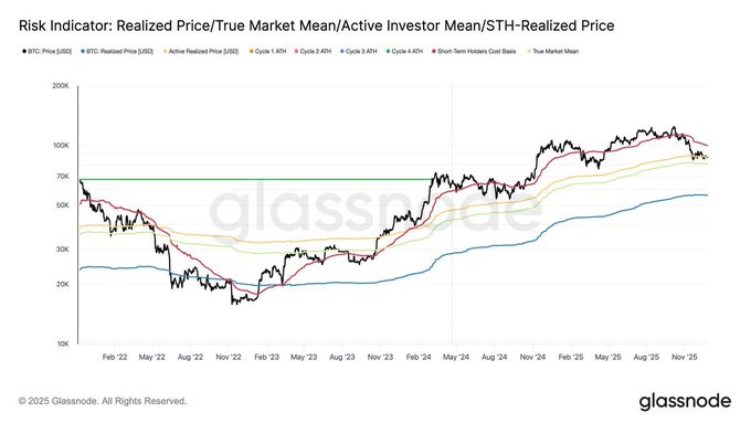 $BTC 的交易价格仍高于关键已实现价格区间🚨 长期持有者仍处于盈利状态,但上涨空间似乎比周期早期更为可控。