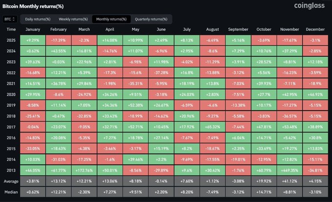 12月依然呈现上涨趋势🚨 比特币历史收益率显示,12月通常收涨,为年底前的上涨空间奠定了基础。